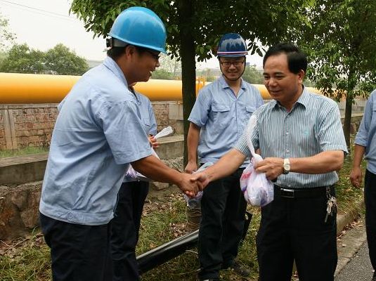 圖為集團(tuán)單總經(jīng)理慰問紹興水處理公司機(jī)修員工
