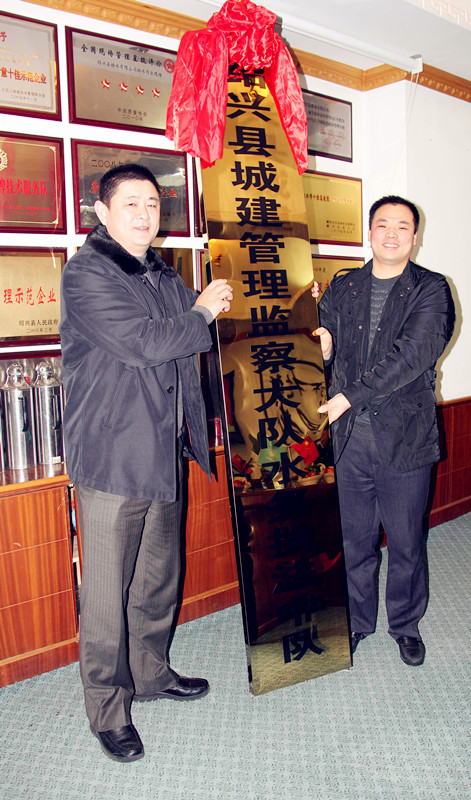 ,紹興縣城建管理監察大隊水務執法中隊成立授牌儀式在排水公司舉行。縣城管辦副主任許立人、集團公司副總經理馮梁峰等領導參加儀式。